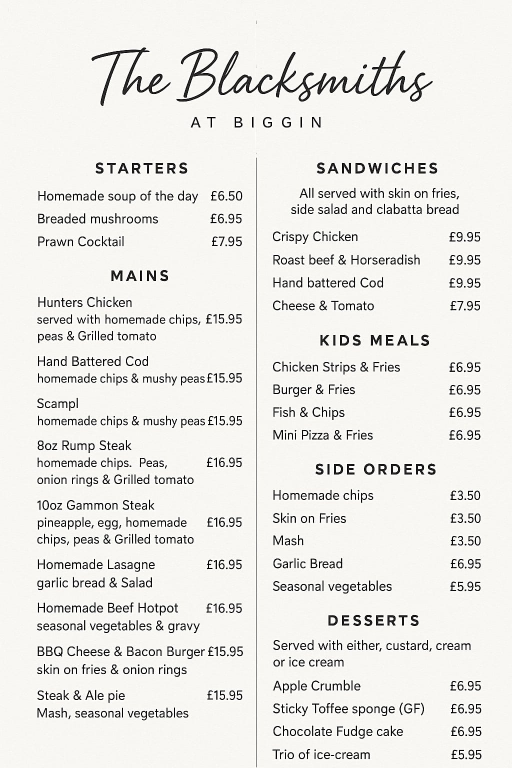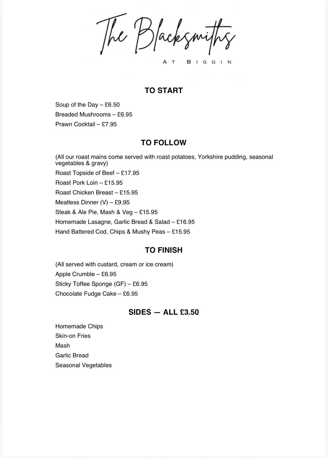 Menu Don’t forget to check out our “Specials” when you visit! Main Menu Sunday Lunch Special Seasonal Menus: